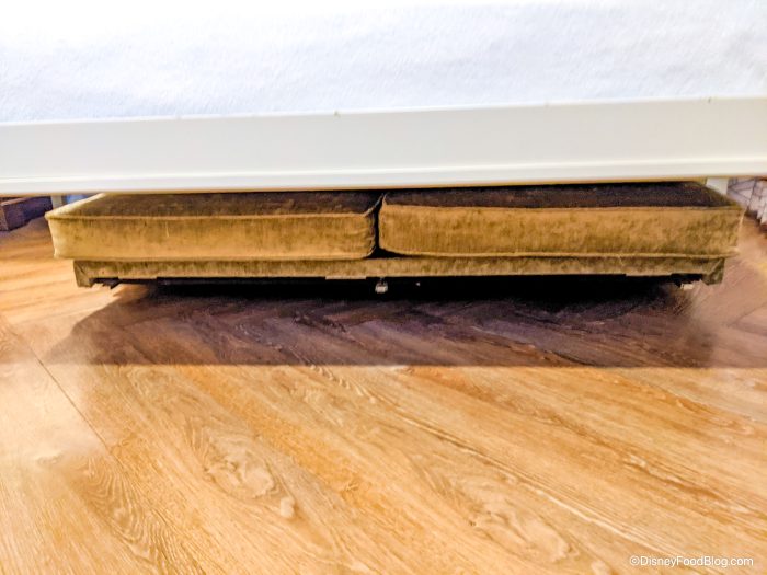 The couch’s cushions and backing go underneath the bed, meaning there isn’t much storage underneath.