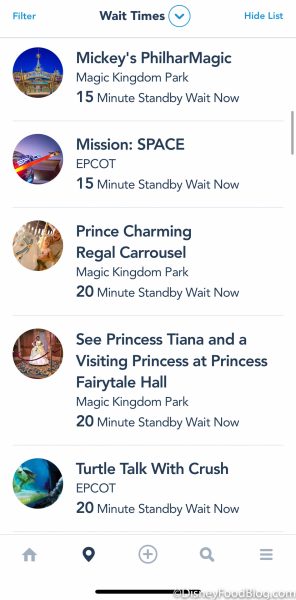 In terms of wait times, when we checked at around 2:45PM ET on Monday the 22nd, there was a mixed bag. Some attractions and experiences had low waits.
