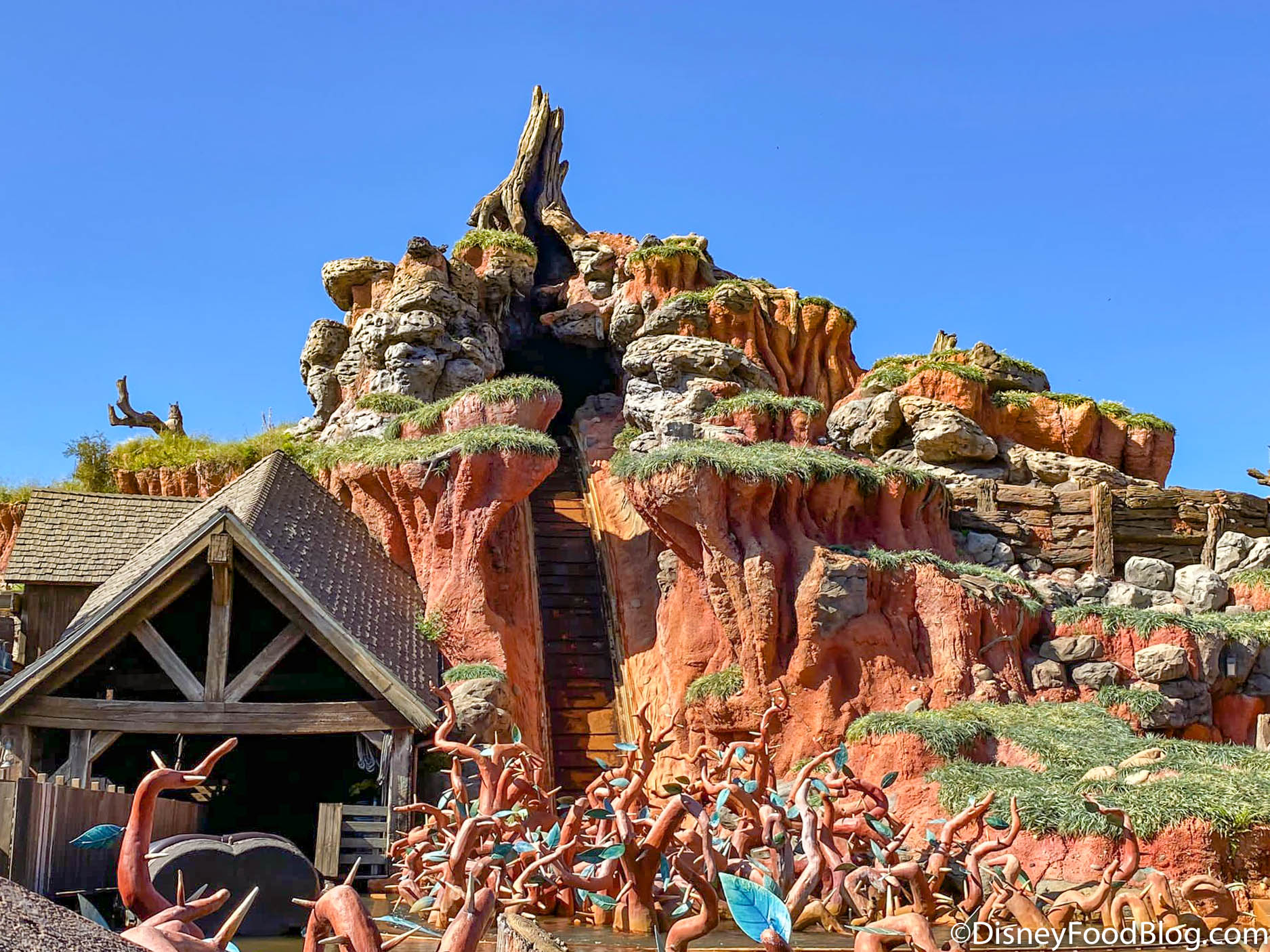 Earlier this morning, we walked past Splash Mountain and noticed that it was down and no water was flowing down the drop in the ride.
