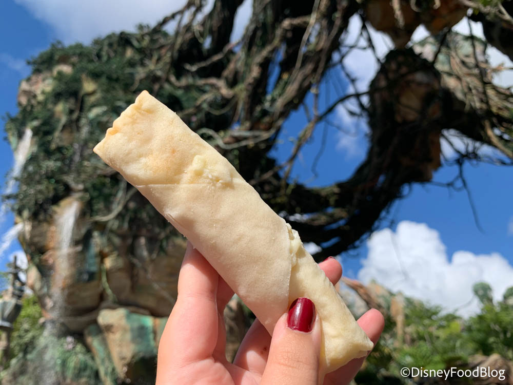 One of our favorite lands in Disney’s Animal Kingdom when it comes to food is Pandora – The World of Avatar. There, stop by Pongu Pongu for a variety of snacks, including the Pongu Lumpia. The Pongu Lumpia is a simple Pineapple Cream Cheese Spring Roll, and fans sure do love it!