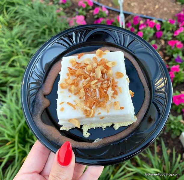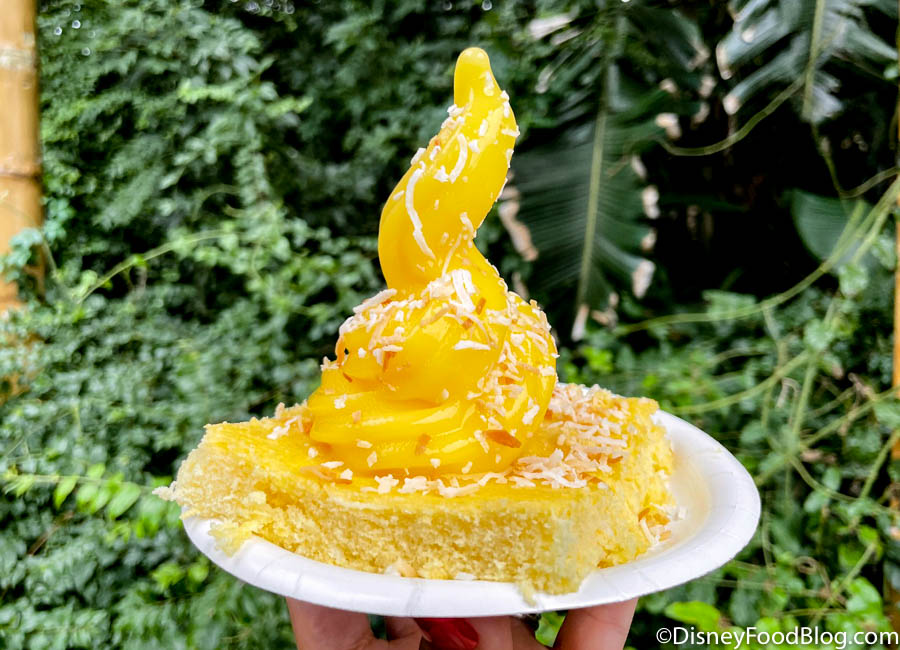 And we’ve got another Instagram winner! The Coconut-Pineapple Cake topped with Dole Whip Pineapple is available for $5 at Refreshment Outpost. This treat is tasty! It’s just not the most exciting since we do get to have Dole Whip a LOT in Disney World.