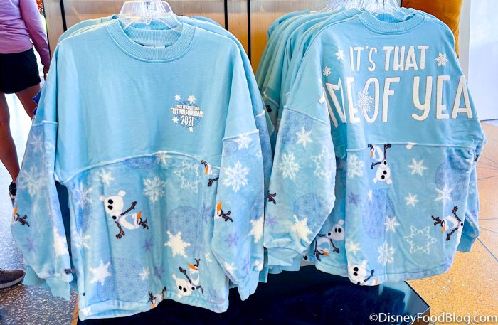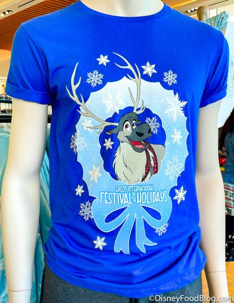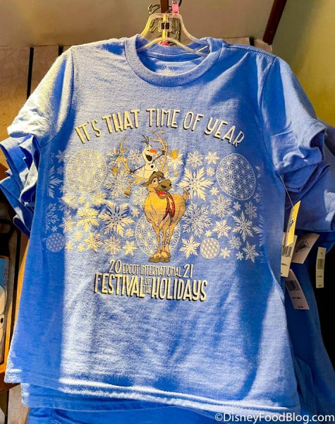 For the 2021 Festival of the Holidays, the merchandise collection is all about Olaf and Sven from Frozen. There’s a lot of blue and white colors and, of course, snowflakes! You can find Festival of the Holidays merchandise around EPCOT at Port of Entry, the Creations Shop, and stores around the World Showcase.