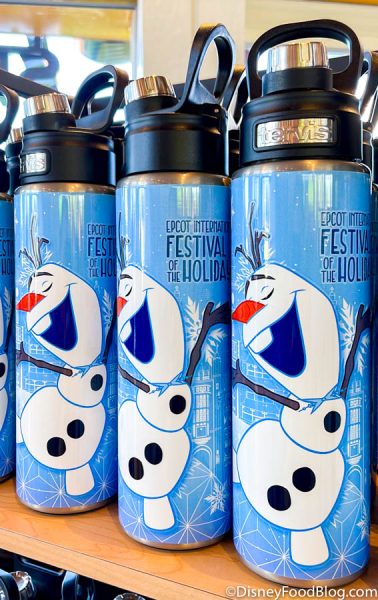 Need to stay hydrated this winter? There’s an EPCOT Festival of the Holidays TERVIS Water Bottle with Olaf on it.