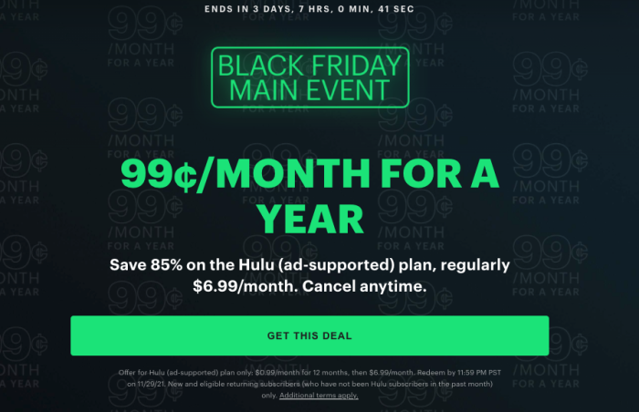 Classic movies, hit tv shows, and more — there are plenty of things to watch on Hulu. Normally, a subscription to this streaming service would cost you $6.99 per month, but Hulu is offering a big Black Friday deal you won’t want to miss.