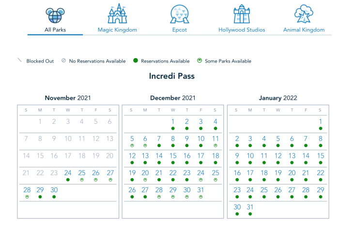 Current Disney Park Pass Reservation Availability the Week of November 28th