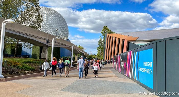 And in EPCOT near the Guardians of the Galaxy: Cosmic Rewind building, some of the construction walls have been pushed back to reveal more walkways and areas! There are still some walls around the building, but there’s a lot more space.