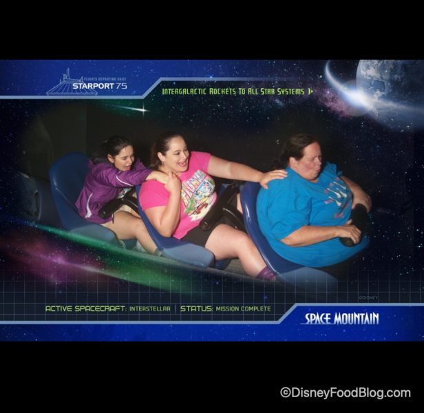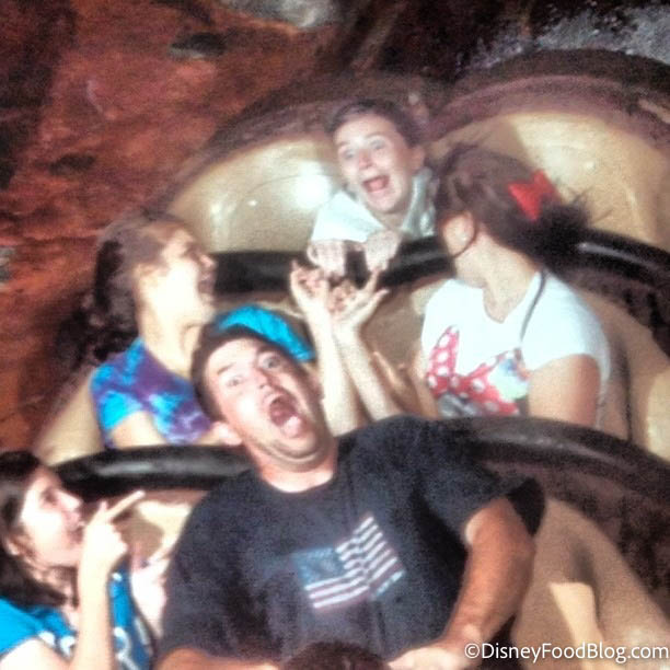 If you can believe it, some of our DFB reporters aren’t actually huge fans of rollercoasters! Here you can see one reporter (far left) hanging on for dear life while riding Space Mountain. The things we do for our jobs, right?