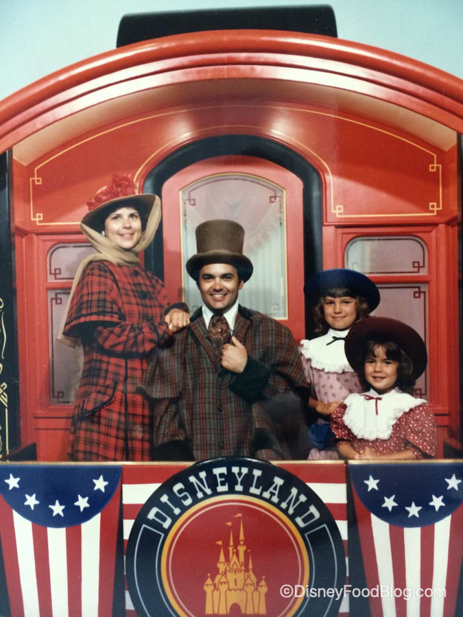 Oh, retro Disney. You were such a magical time. Such a strange time. Nothing screams “Disneyland” like… dressing up in patriotic clothing with your entire family and posing on the caboose of a train, right? Right?