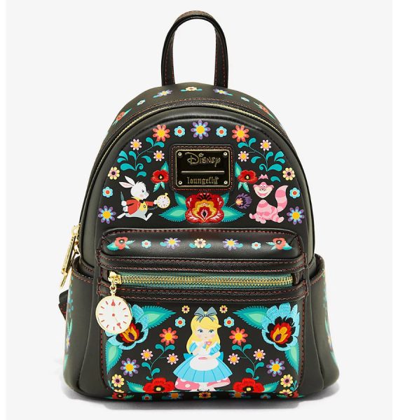 Click Here To Buy The Loungefly Disney Alice in Wonderland Characters Floral Mini Backpack