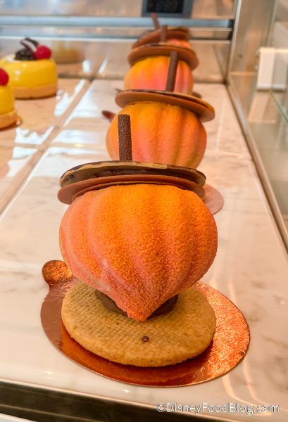 The Pumpkin Tart has returned — it’s a classic pumpkin pie topped with whipped cream.