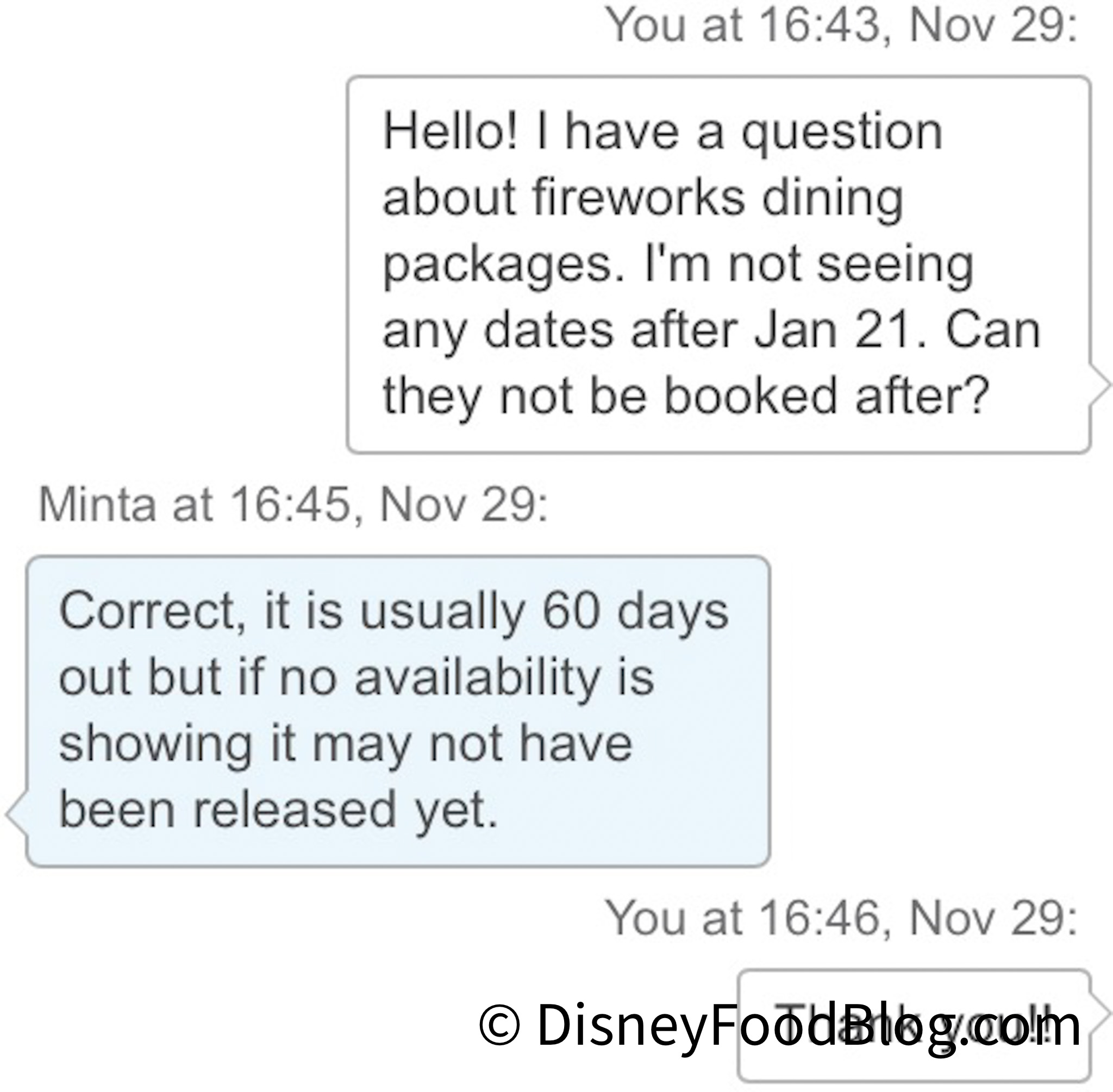 We found this to be a bit strange, since Disney World had not announced any changes being made to their fireworks package availability. We reached out to a Cast Member and pointed out the fact that the packages appeared to be unavailable after January 21st, and asked if they were available for booking after that date.