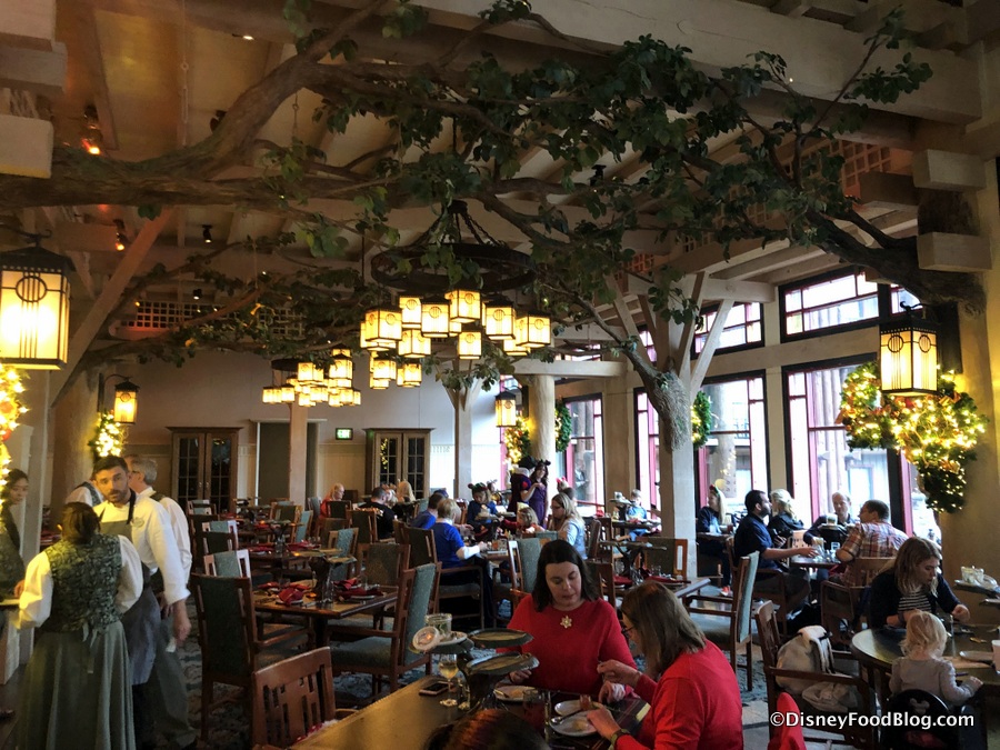 Story Book Dining at Artist Point. located in Disney’s Wilderness Lodge, is a fan-favorite character dining post, with diners receiving visits from characters like Snow White, the Dwarfs, and even the Evil Queen sometimes. It will reopen for dinner on December 16th with modified character interactions.