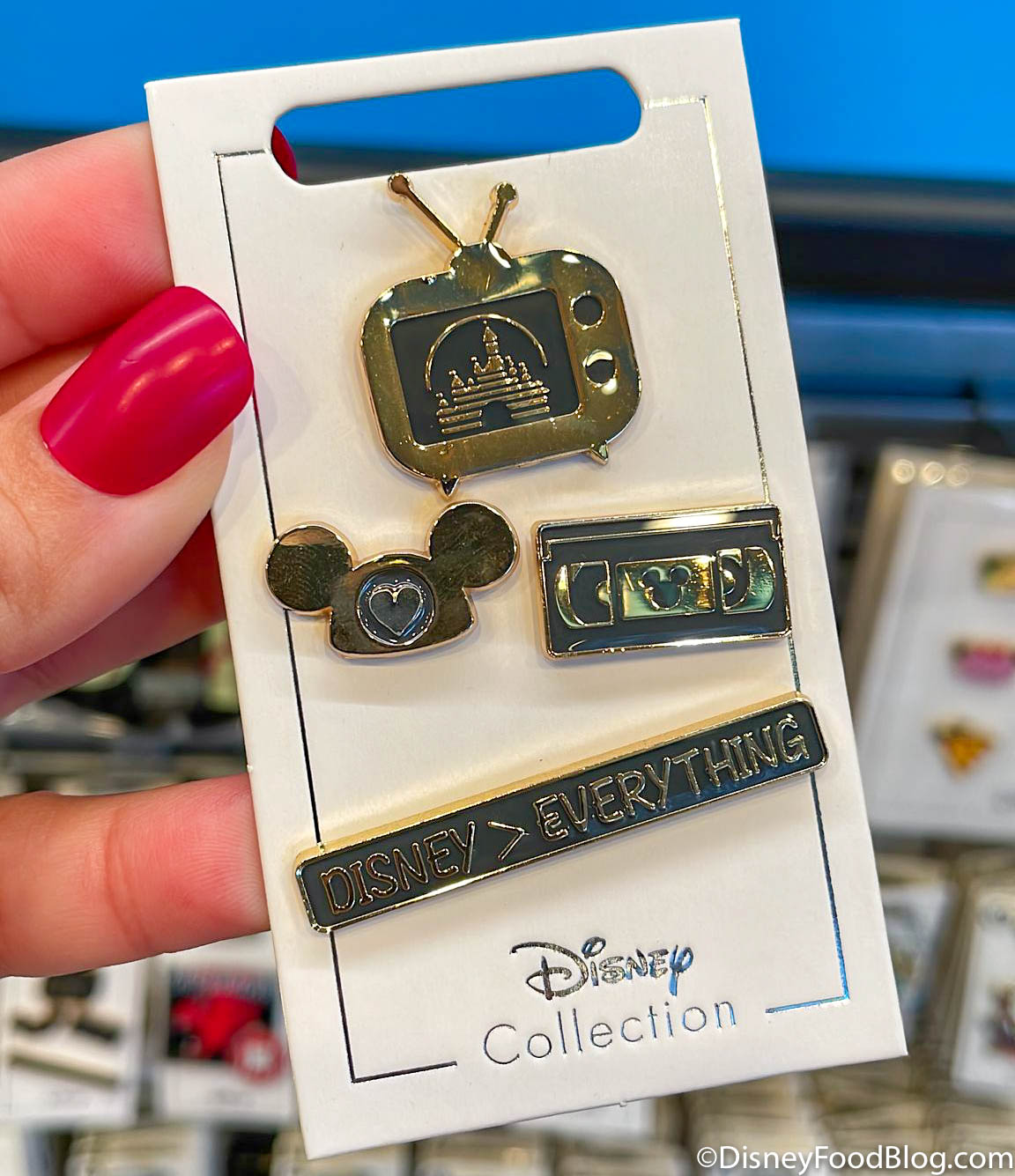 …a pin set with a TV, ears, a VHS, and more…