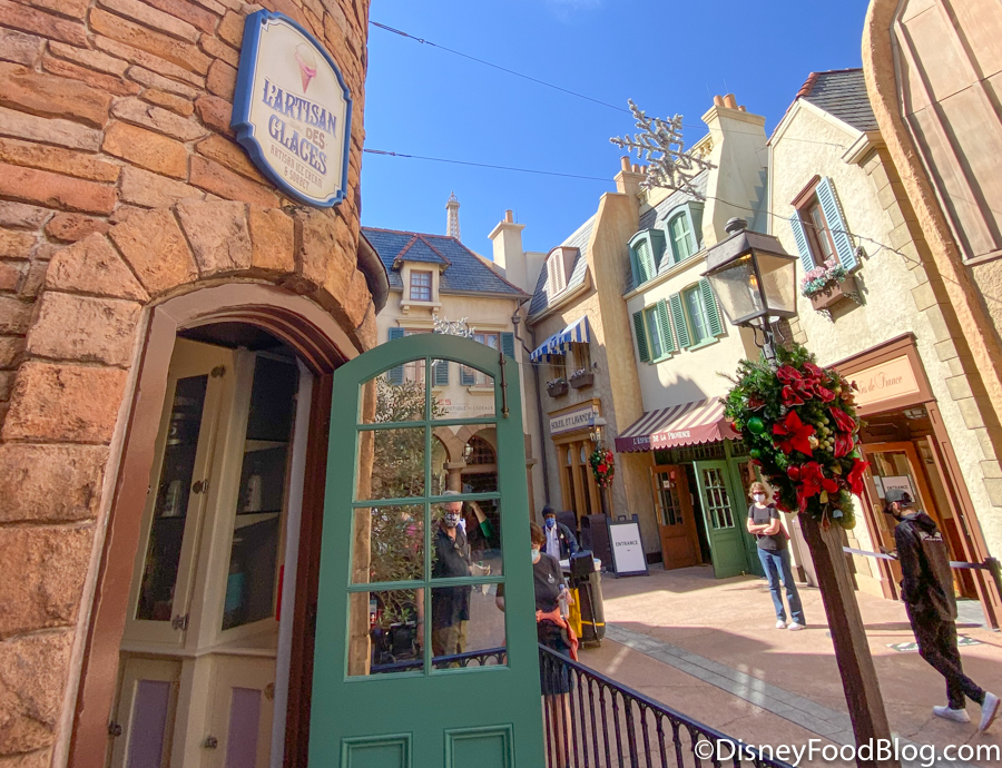 The 2021 Festival of the Holidays recently debuted in EPCOT, and you can also try lots of new and returning holiday treats around the World Showcase. We found two holiday treats at a favorite spot in France, and we wouldn’t blame you for getting both of them, even if you just wanted some REALLY pretty photos.