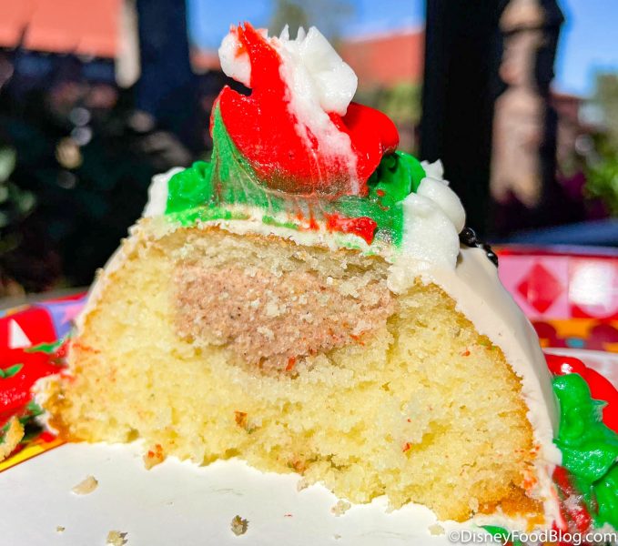 Over at Kona Island in the Polynesian you’ll find the returning Holiday “Elf” Dome Cake! This treat is made of vanilla cake with eggnog filling, white chocolate glaçage, and buttercream décor.