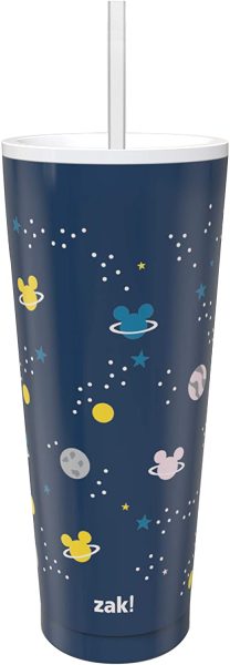 Stay hydrated by carrying your favorite beverages around with you with this adorable Zak Designs Mickey Mouse Travel Tumbler. This tumbler is made of steel and is insulated, so it will keep your cool beverages cold and your warm beverages hot. And it has a fun spacey Mickey design on it.