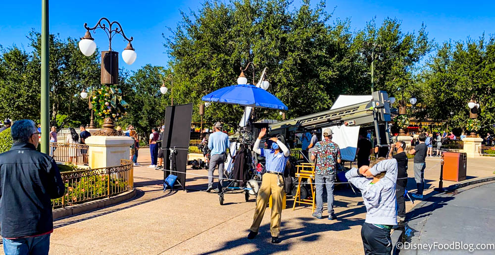 We’ve seen even MORE of these filming sessions in the parks for both the 50th Anniversary and the holiday season. So here’s a look at what’s happening behind the scenes of that filming you see for Disney World.