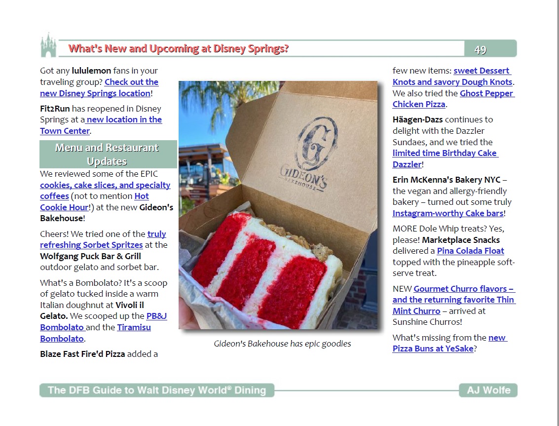 As just a brief example, in the DFB Guide to Walt Disney World Dining 2022, we’ve got bingo cards for you to use as you make your way around Disney World, scavenger hunts, trivia, and Top 5 lists for ALL kinds of snack types. We’ve also got lists of must-do restaurants, information about Genie+, comprehensive details about what’s new in Disney World, and more.