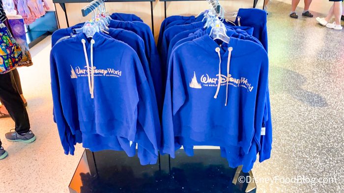 If you’re looking to do some shopping to celebrate Walt Disney World’s 50th Anniversary, you can now find the Blue Logo Hoodie in EPCOT at Creations Shop. There’s nothing too fancy about it but it is sure to keep you warm on these cooler Florida winter days.