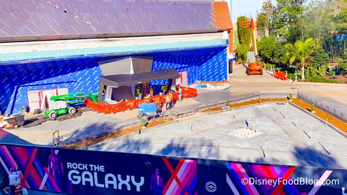 We’ve been keeping up with the construction over at EPCOT’s upcoming roller coaster, Guardians of the Galaxy: Cosmic Rewind for quite some time now, and this week there was some MAJOR progress near the entrance to the attraction. If you look close, you can see that the Nova Corps star has been added right in the middle behind what appears to be the awning where guests will enter the attraction.