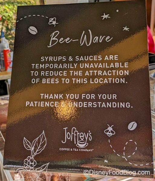 Remember though EPCOT has 3 other Joffrey’s locations you can check out instead — maybe the bees don’t know about those yet? Are they Canadian bees and sticking around where they know? HMM.
