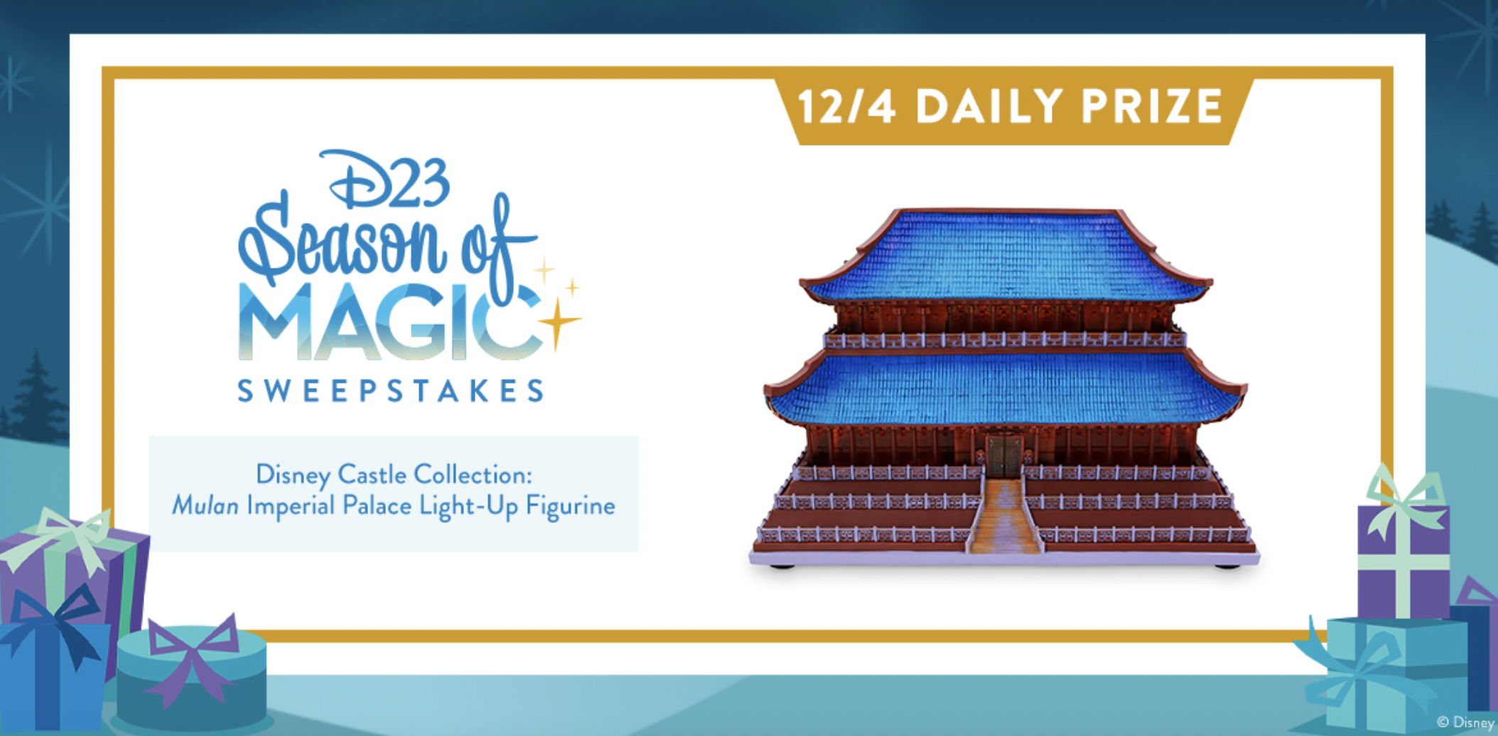 In honor of the holiday season, D23 is hosting its Season of Magic Sweepstakes, with a new prize awarded every day for 23 days in December!