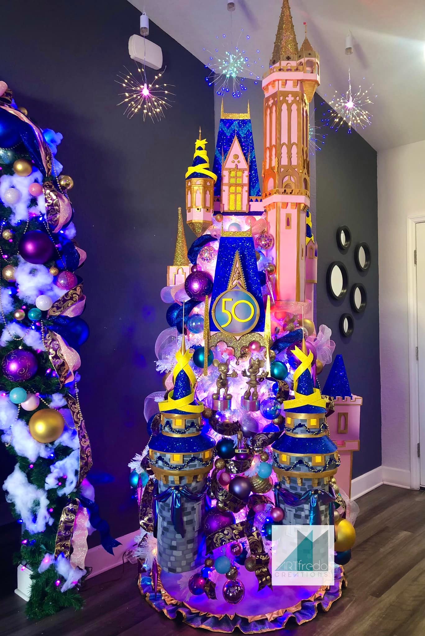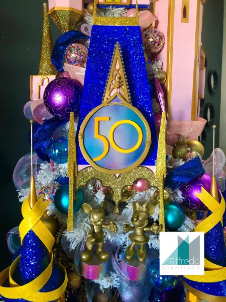 This spectacular 50th Anniversary inspired Christmas tree is the work of former Cast Member, Alfredo Majuri Vargas! All of the pieces are handmade, and the result is absolutely stunning! Alfredo was a performer and scenic painter at Disney World and you can see he is making the most of his artistic talents!