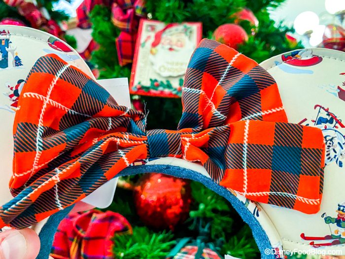 The bow is a red plaid, which is definitely giving us vibes of going away to the mountains to hit the slopes for the weekend.