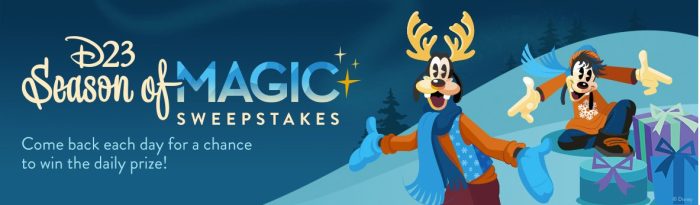 The Official Disney Fan Club, known as D23, provides members with special perks like exclusive merchandise, special events, online content, and more. And for the month of December, through the 23rd (get it?), D23 Members can participate in the Season of Magic Sweepstakes, which offers members a chance to enter daily for a NEW prize each day!