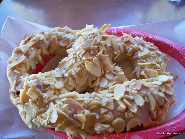 First up in EPCOT is the Norwegian Kringla (aka the Sweet Pretzel) at Kringla Bakeri Og Kafe in the Norway Pavilion! And, this one isn’t just your average pretzel — it’s better! The Pretzel-shaped pastry comes with assorted toppings so you can choose between cinnamon, almonds, or chocolate to pair with that salty, delicious dough.