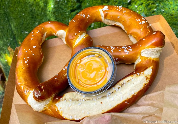 Pandora — The World of Avatar is home to some fan-favorite attractions, but it’s also the next stop for our pretzel crawl! The Colossal Pretzel can be found at Pongu Pongu and not only is it GIANT (literally, the size of your face), but it’s also served with a side of BEER cheese for $10.49.