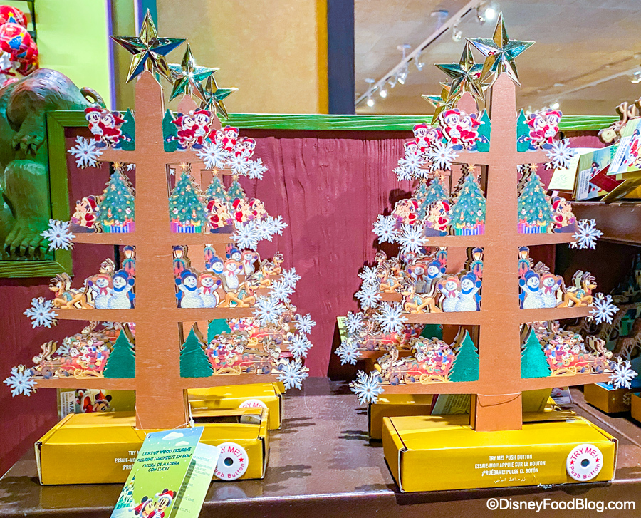 We found this new wooden Christmas figurine in Discovery trading! It’s a tree that features different Disney characters and lights up.