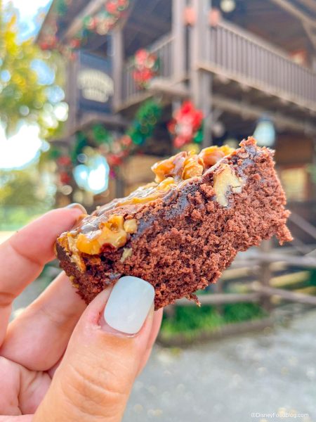 If you’re looking for a more…brownie-like…brownie, head over to the Regal Eagle Smokehouse in EPCOT and try the S’mores Brownie, you won’t be disappointed! It’s a fun spin on a brownie and it’s not as dry as the Turtle Brownie.