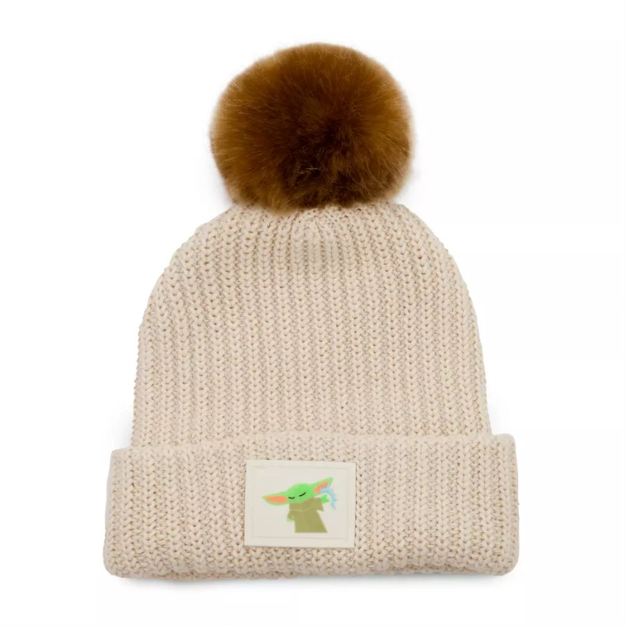 The first beanie features Grogu, aka The Child, aka Baby Yoda (whatever you prefer to call him)! The Child Beanie by Love Your Melon is a light brown with a dark brown pom pom on top. AND it has little Grogu on it using the Force — and look at how hard he’s concentrating — he’s going to need a nap after that!