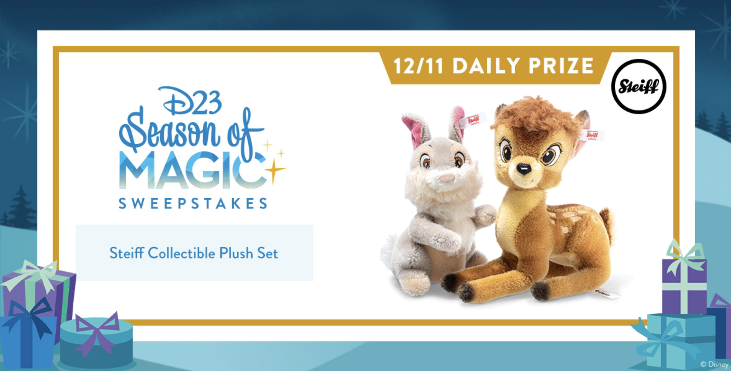 To celebrate the holiday season, D23 is hosting its Season of Magic Sweepstakes, with a new prize awarded every day for 23 days in December!