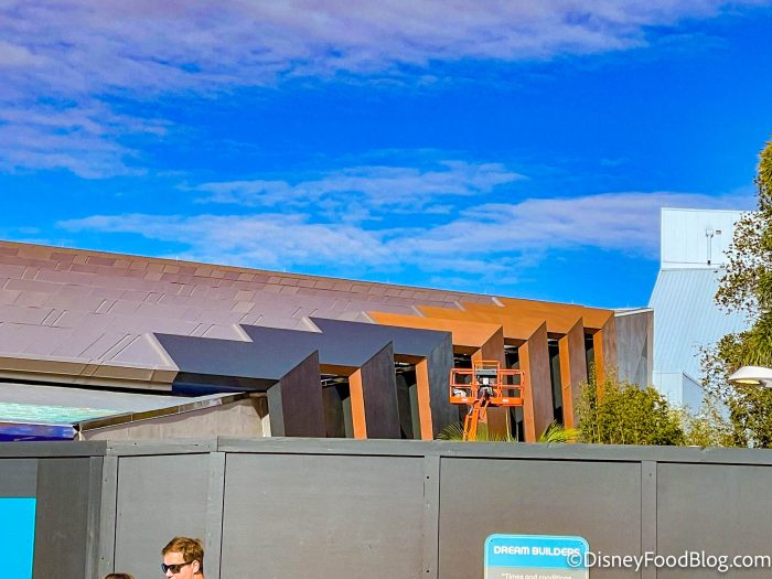 Construction crews are now hard at work making those brown panels on the building darker! Disney Imagineer, Zac Riddley, shared a video on his Instagram with Cast Members explaining the new color palette and we learned that it is actually made with a variety of different metallic greys, slates, and silvers. This makes it appear a different color depending on what angle you are looking at it from and how the sun is hitting it.