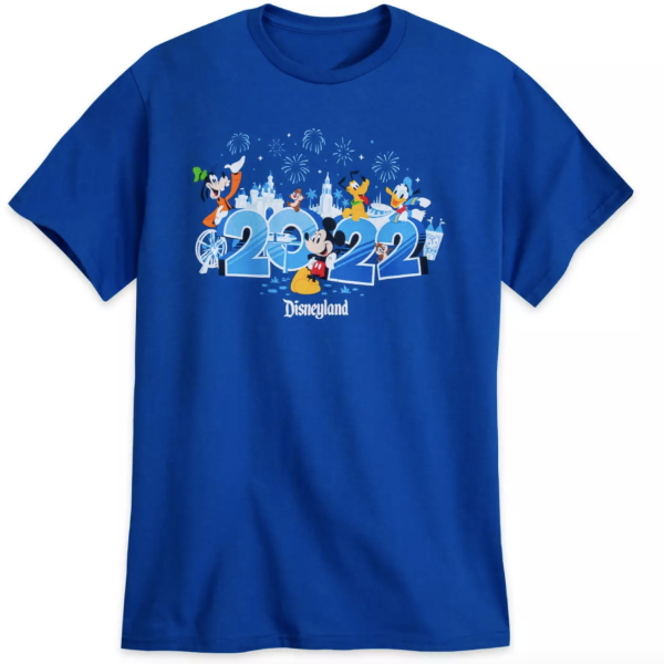 The 2022 Mickey Mouse and Friends T-Shirt for Adults features Mickey, Goofy, Donald, Pluto, and Dale celebrating the New Year at Disneyland Resort! This is a great way to ring in the new year!