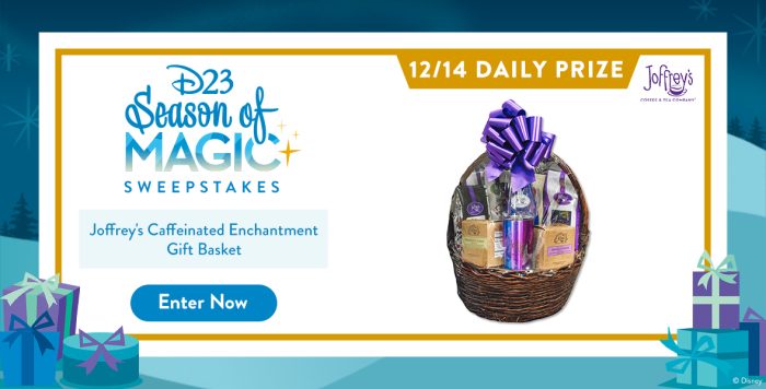As part of D23’s Season of Magic sweepstakes, the Official Disney Fan Club has been giving away FREE prizes each day themed to different things. Today’s prize is all about Joffrey’s Coffee!