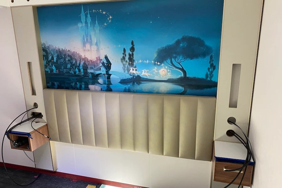 Disney has outlined the process it took when designing the ship’s staterooms, stating that it starts with collaboration when designers and artists spend YEARS considering every detail, right down to the light, color, and shapes seen in the rooms. Just like with the theme parks, Disney Imagineers are figuring out every detail, large and small. Like look at this beautiful Cinderella-themed headboard!