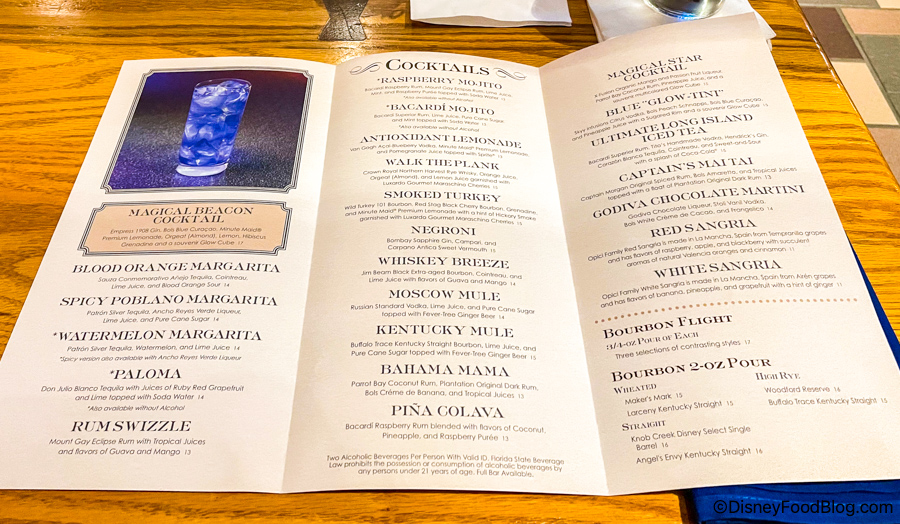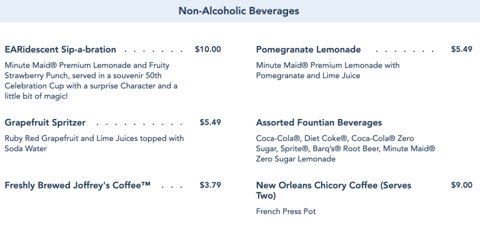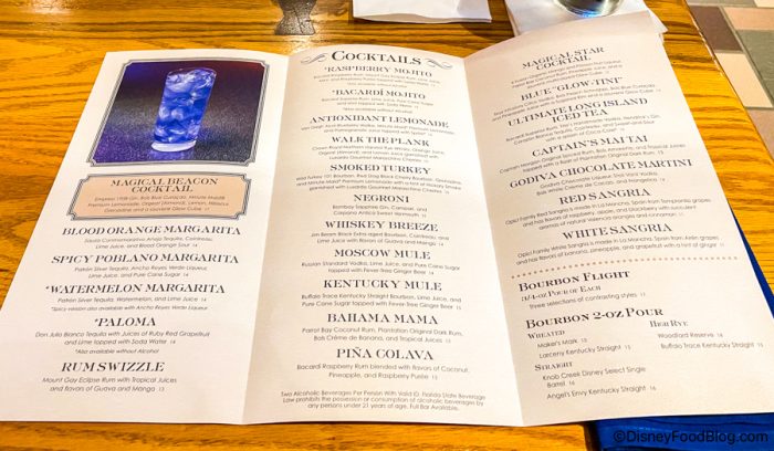 Beyond that, they have hot beverages, specialty cocktails, dessert cocktails, and more than two dozen different kinds of beer. You certainly won’t go thirsty! The even have Abita beer, which is brewed in New Orleans (well, technically Abita Springs, LA, hence the name!) and not typically seen on restaurant menus ’round Disney World.