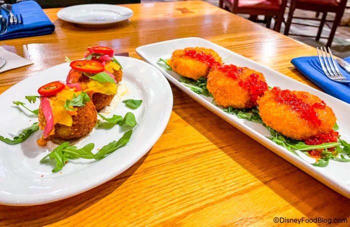 The Boudin Balls are a mix of andouille sausage, smoked sausage, and dirty rice that’s then breaded and fried. They were served with a remoulade, creole mustard, and pickled vegetables.