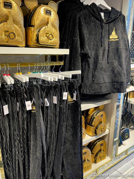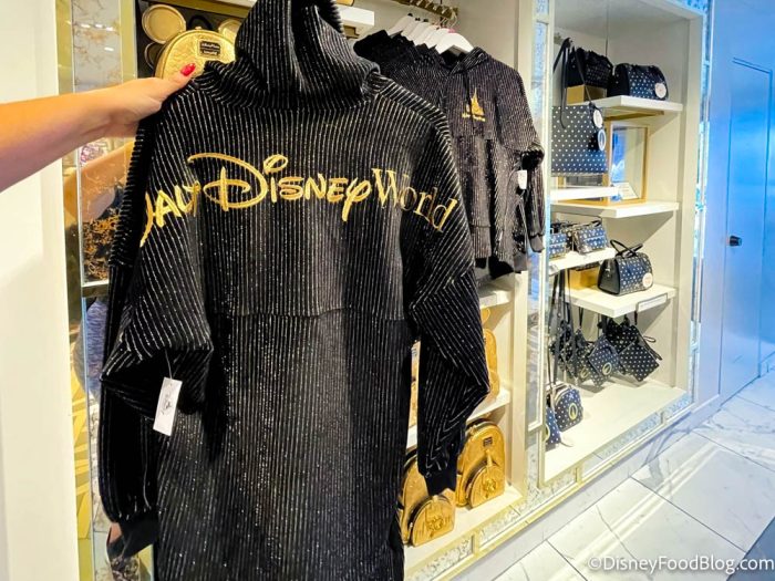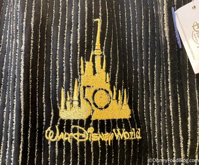 On the front, there’s a big pocket and an embroidered gold logo of the Cinderella Castle for Disney World’s 50th Anniversary.