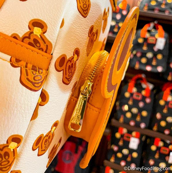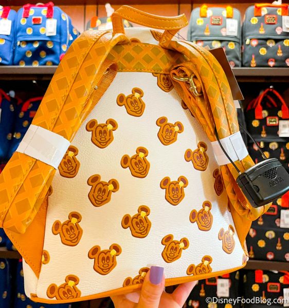 The bags have the same waffle pattern as the Minnie ears, and the pocket in the front is another waffle with its own 3D pat of butter.