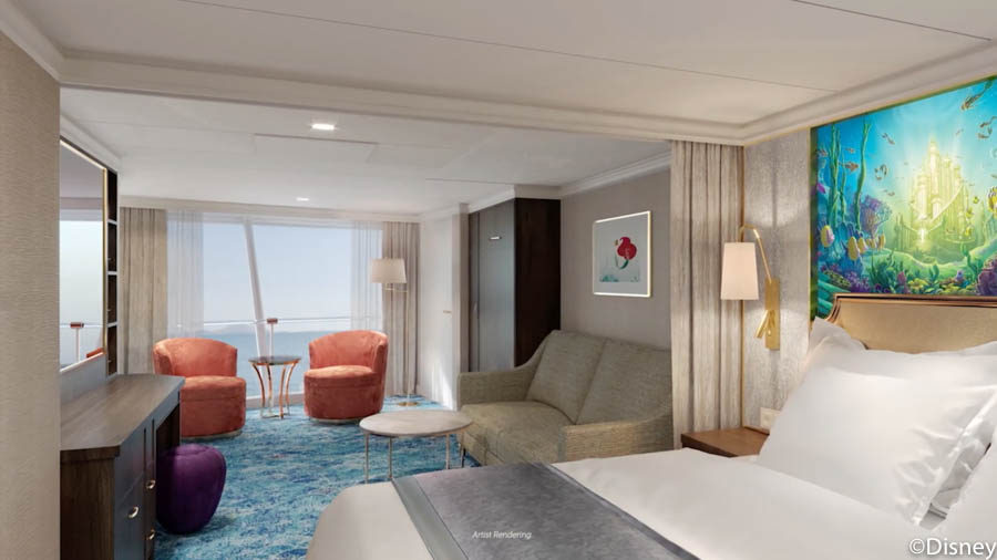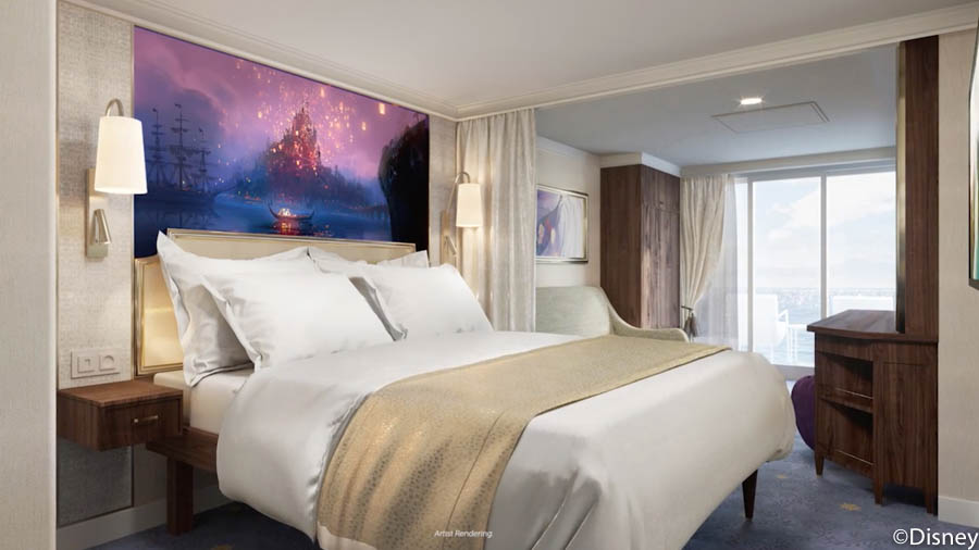 They have large living areas, king beds, luxurious finishes, and premium amenities, and most are themed after Tangled, although there are a few that have The Little Mermaid as the inspiration.