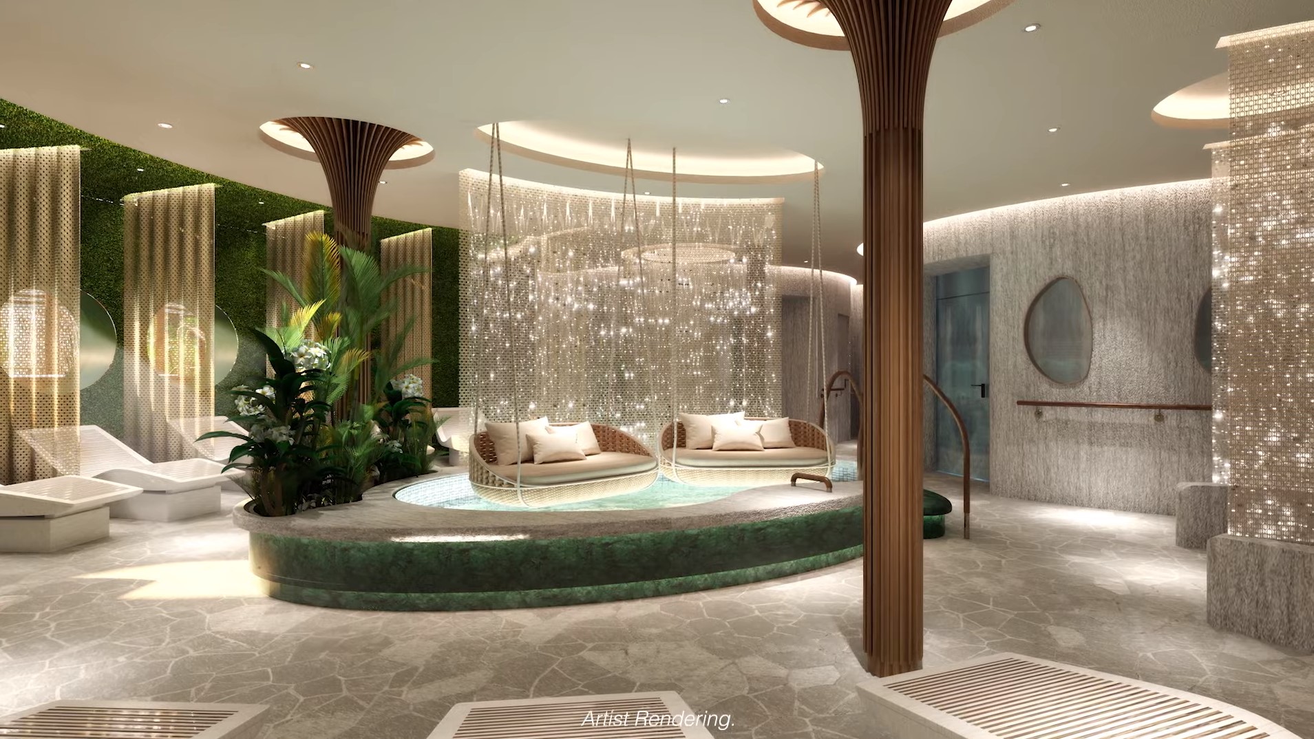 In the Senses Spa, guests can find the fleet’s first ice lounge, which is used in thermal therapies. There are also other favorite elements like heated ergonomic loungers, sensory spa showers, and sauna, steam, and dry chambers. The Fitness Center will have exercise equipment so guests can work out with fantastic sea views.