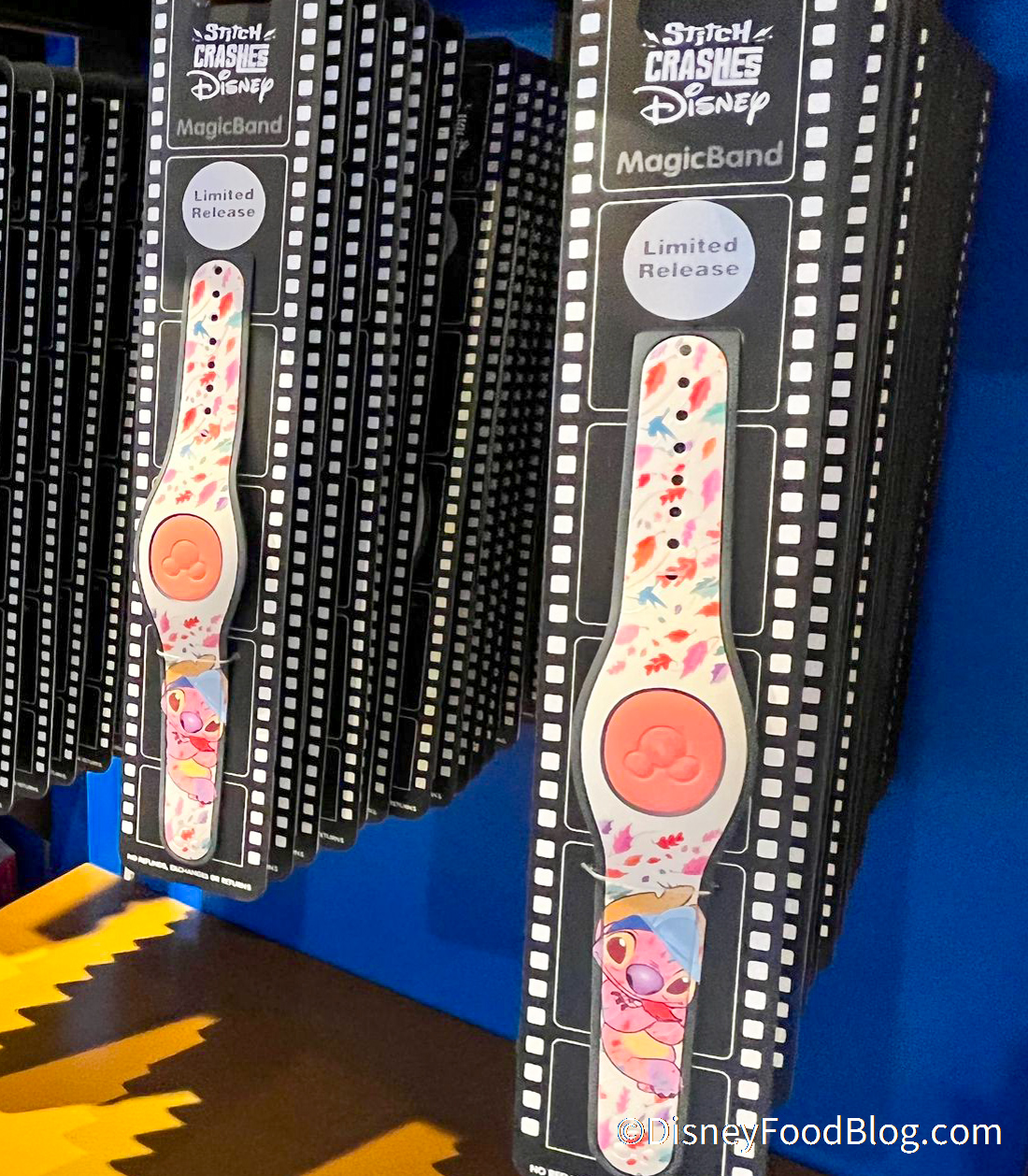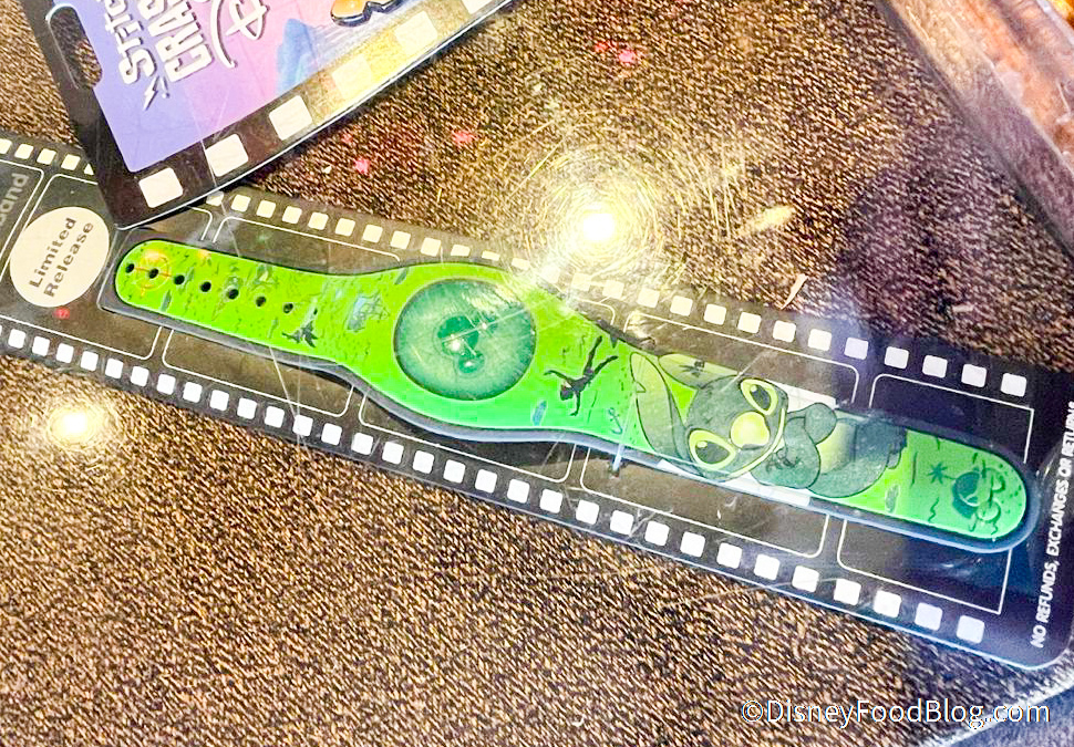 Why? Well, some items of the Stitch Crashes Disney collections that haven’t been released yet — and aren’t supposed to be released until 2022 — have popped up early at Disney World! That includes the Stitch Crashes Peter Pan MagicBand.