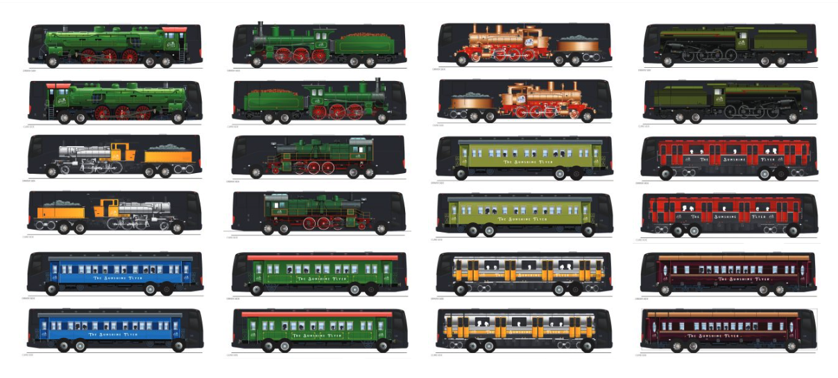 The buses that will be used by The Sunshine Flyer are premium motor coaches that are themed around “old-fashioned passenger cars and train engines.” The buses feature fun designs on the outside and the staff are set to be dressed as 1920s rail conductors and engineers, really adding to that overall theme. The press release shares that the buses will “effectively serve as time-machines, offering a glimpse into 1920s rail travel.”