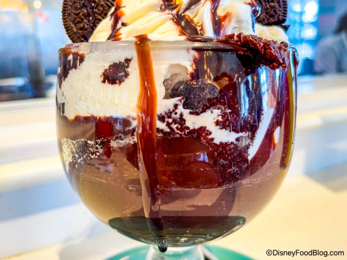 Talk about a chocolate lover’s DREAM! The big brownie (it’s in there, we promise! It’s just drowning in a sea of sugar is all.) was well balanced with the Oreos and sauce, while the ice cream helped cut through some of that richness.