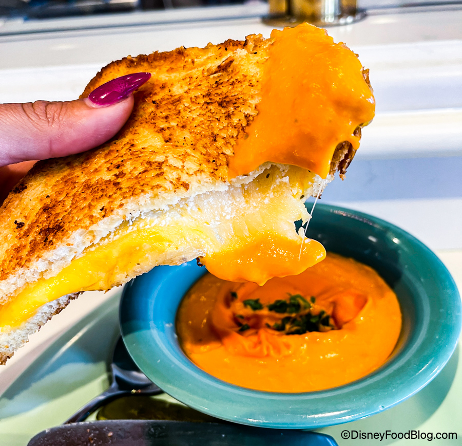 We dipped our grilled cheese in the soup, of course, to get that classic combo and it was delicious! We think kids would love this one, or it would be great on those rare cold and rainy days in Disney World.