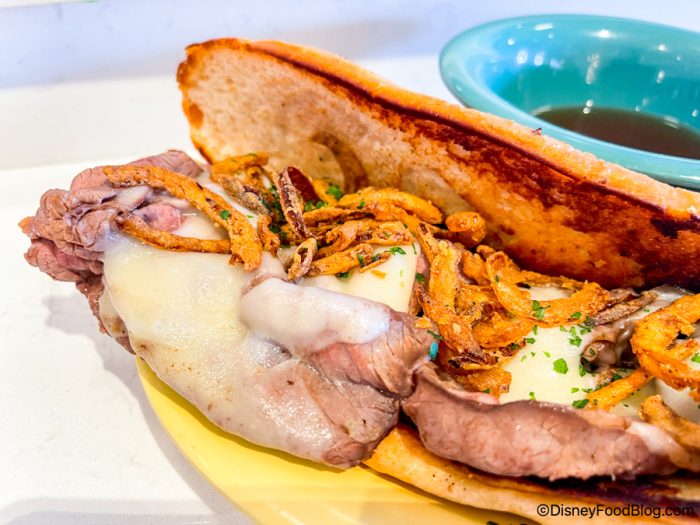 The thin meat really benefitted from the savory au jus that you dip into — it clung onto the meat well and added a ton of extra moisture and flavor.